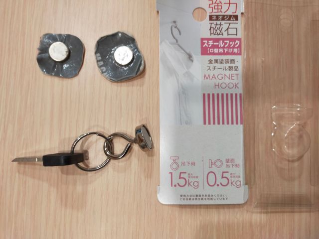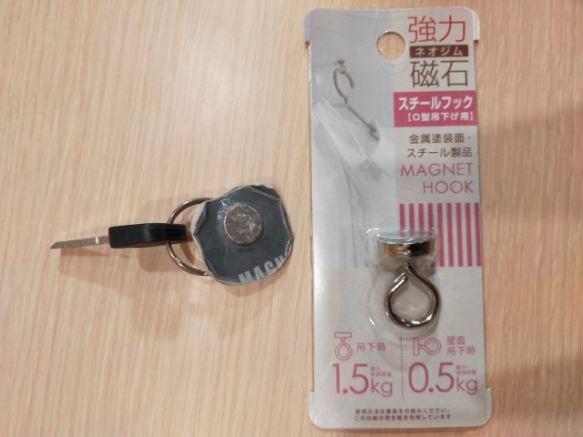 ネオジム磁石にキーホルダーが付けられる丸い輪っかがあるこれが欲しかった。