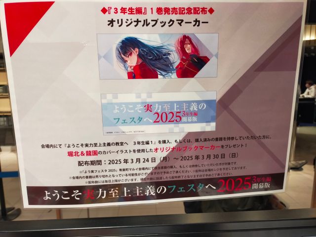 明日が最終日となる「ようこそ実力至上主義のフェスタへ2025 3年生編開幕版in有楽町マルイ」に行ってきた。