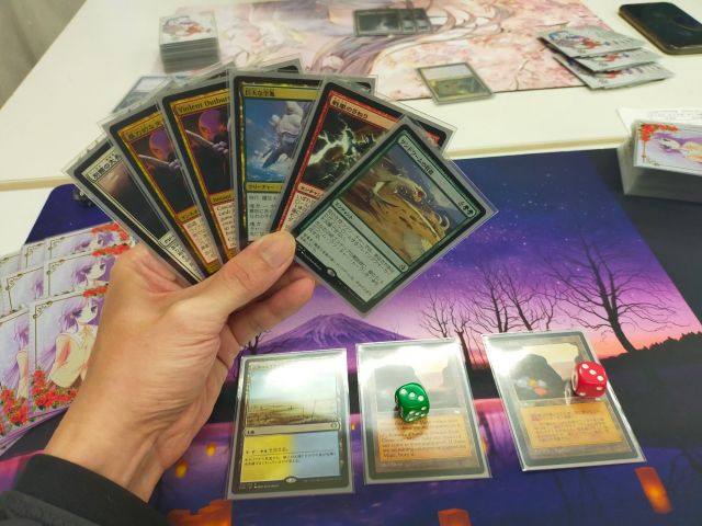 日曜日は最後まで遊べないが、レガシー大会に途中まで参加する。