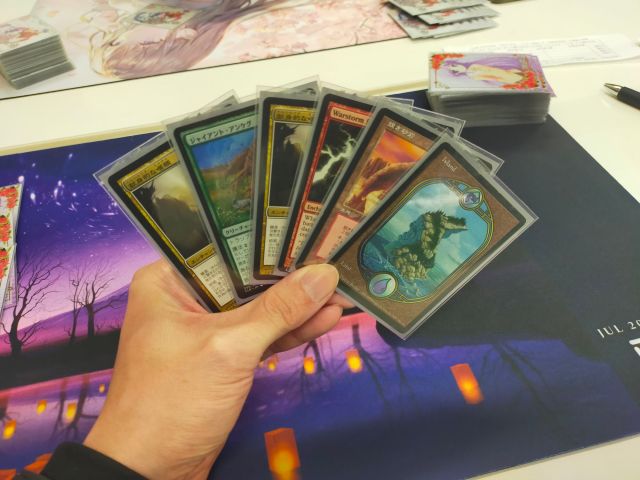 フェッチランドやハンデスによって相手のライフが減っており、アンコモンの海亀のパワーが6だったのでちょうど勝てた。