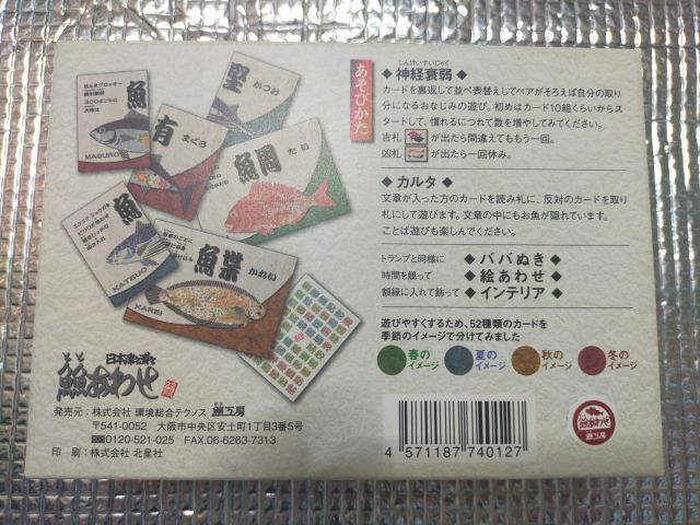 と思ったら説明書に「魚偏の漢字と色とりどりの千代紙・色紙の切り絵を使ったカードゲームです」と書いてあった。