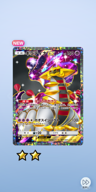 既に2枚あるギラティナexだが、☆2レアが来てくれたので1枚はこちらを採用。