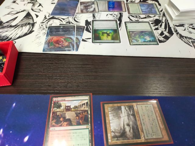 相手のライフ4点の時にターンが回ってきたら、砂漠出して1点、計算された爆発をフラッシュバックで確定3点以上で勝てたのだが、忍耐により墓地がライブラリーに戻された。ぐぬぬ。