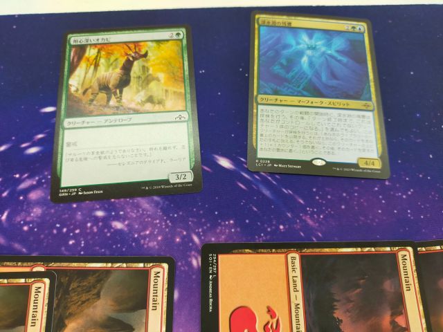 厳密に全部のカードを用意するのではなく、家にあったカードと頂いたカードの日本語版を詰め込んだと言っていた。0マナは無し。
