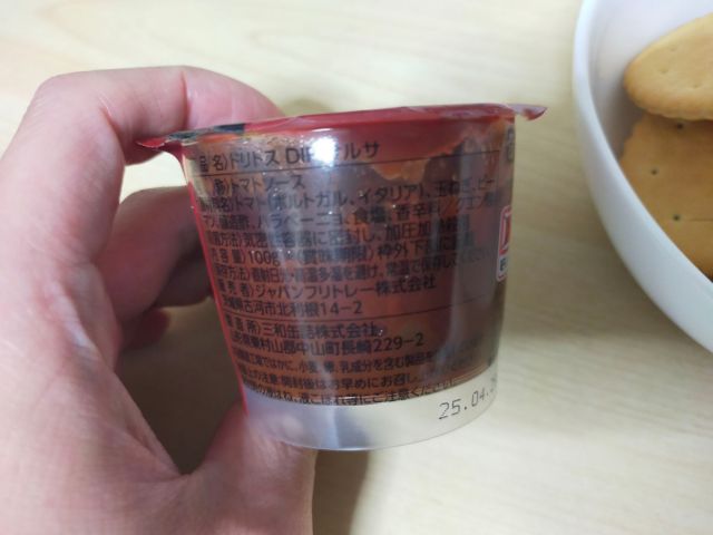 そのためにスナック菓子などという嗜好品を買うはずもなく、備蓄品のクラッカーに付けて食べる。