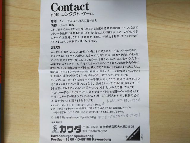 「コンタクト・ゲーム」以外にも、年少者が遊べるボードゲームを持っていきたいところ。
