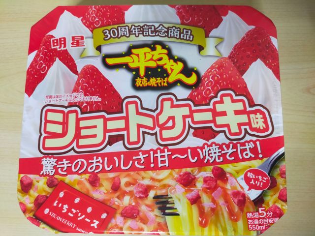 明星30周年記念商品 一平ちゃん夜店の焼きそば ショートケーキ味