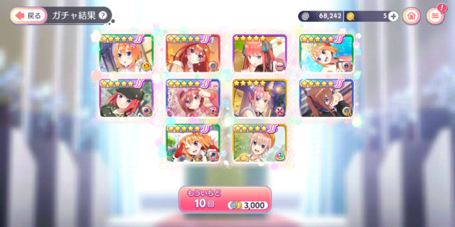 イベント特効の5人は全員手に入れて、五月以外は+4まで強化した。