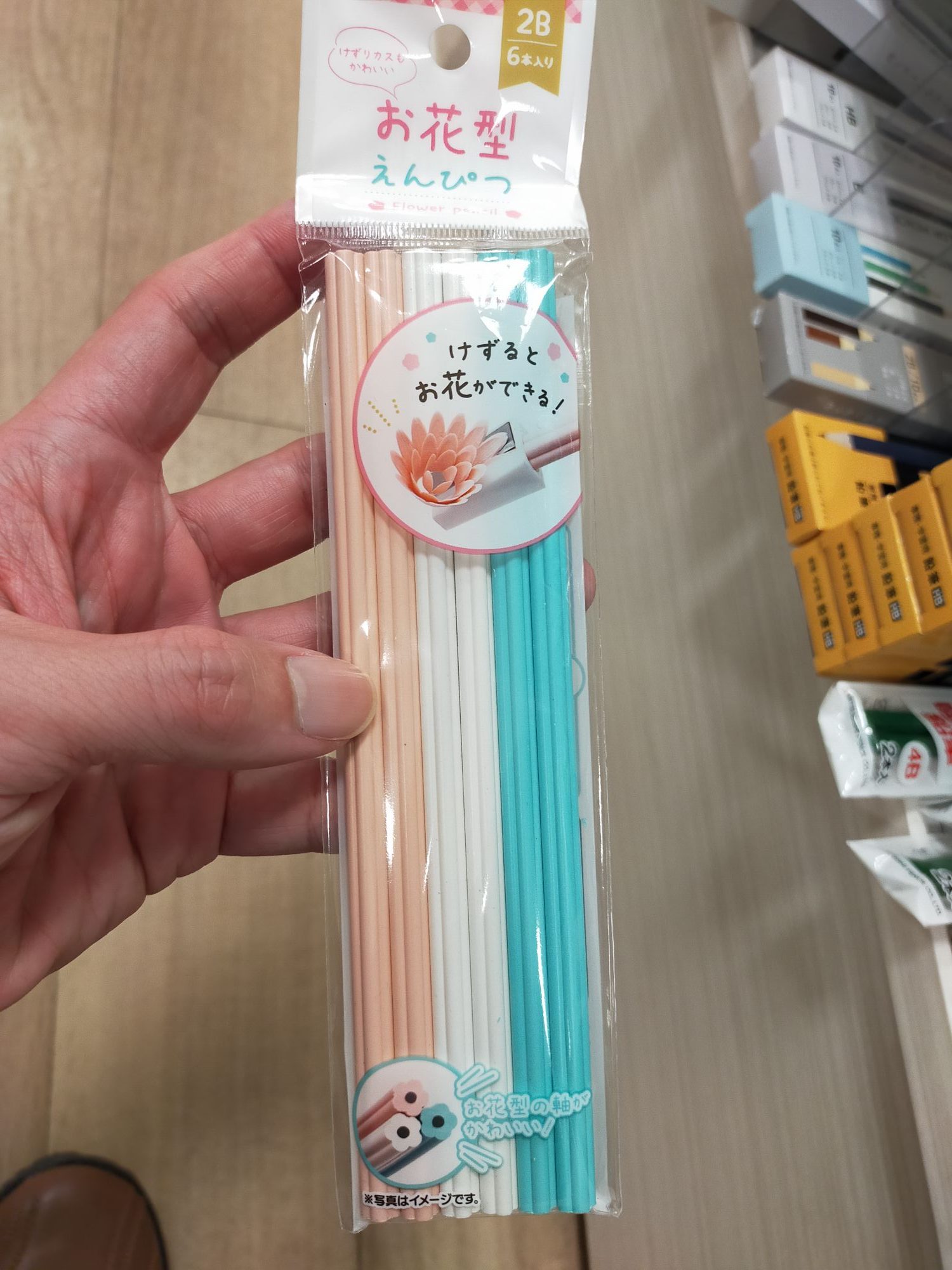 円や六角形だけでなく、三角、四角、五角形など鉛筆の軸は色々な形があるが、お花形は初めて見た。