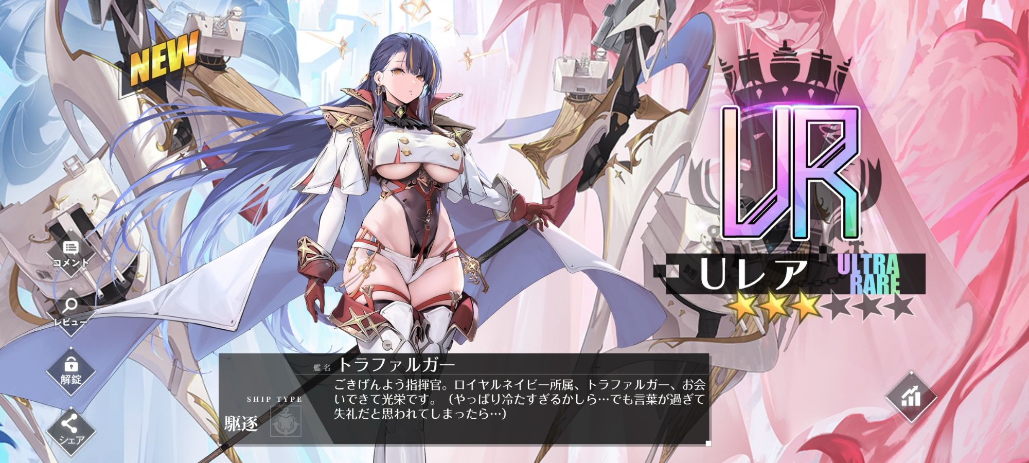 趣味の話。 アズールレーンの話。 いつもどおり、新キャラを入手したので紹介。 先日のアップデートで終わってしまったが、最高レアであるUR艦船が2体実装された。 ライオン。 百獣の王と同じアクセント。 CV:大 … 続きを読む アズールレーンの話(ライオン、グロリアスMETA、ギャラント、クレオパトラ、トリニダード、トラファルガー)+大鳳のビリヤード衣装アウト。
