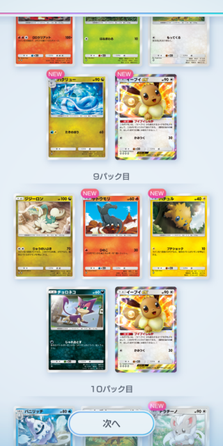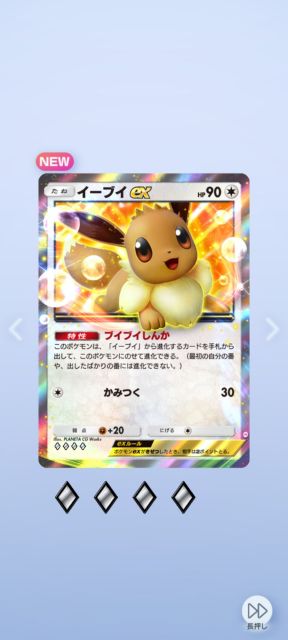 ピカチュウパックから出るイーブイ(たいあたり20)のイラスト違いが2枚あるので、そちらをメインに使っていたが1枚引けるのも良いな。