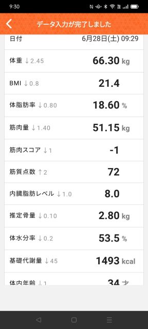 とりあえず「元に戻った」程度なので気にしない。64kg台になったら黄色信号。