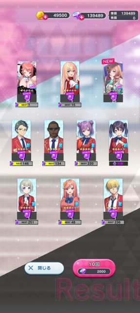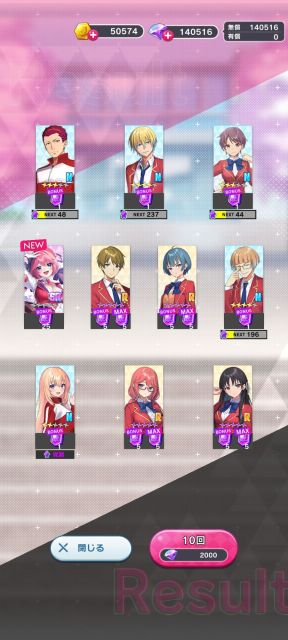 いつもの無償ダイヤを使っての10回ガチャを回す。