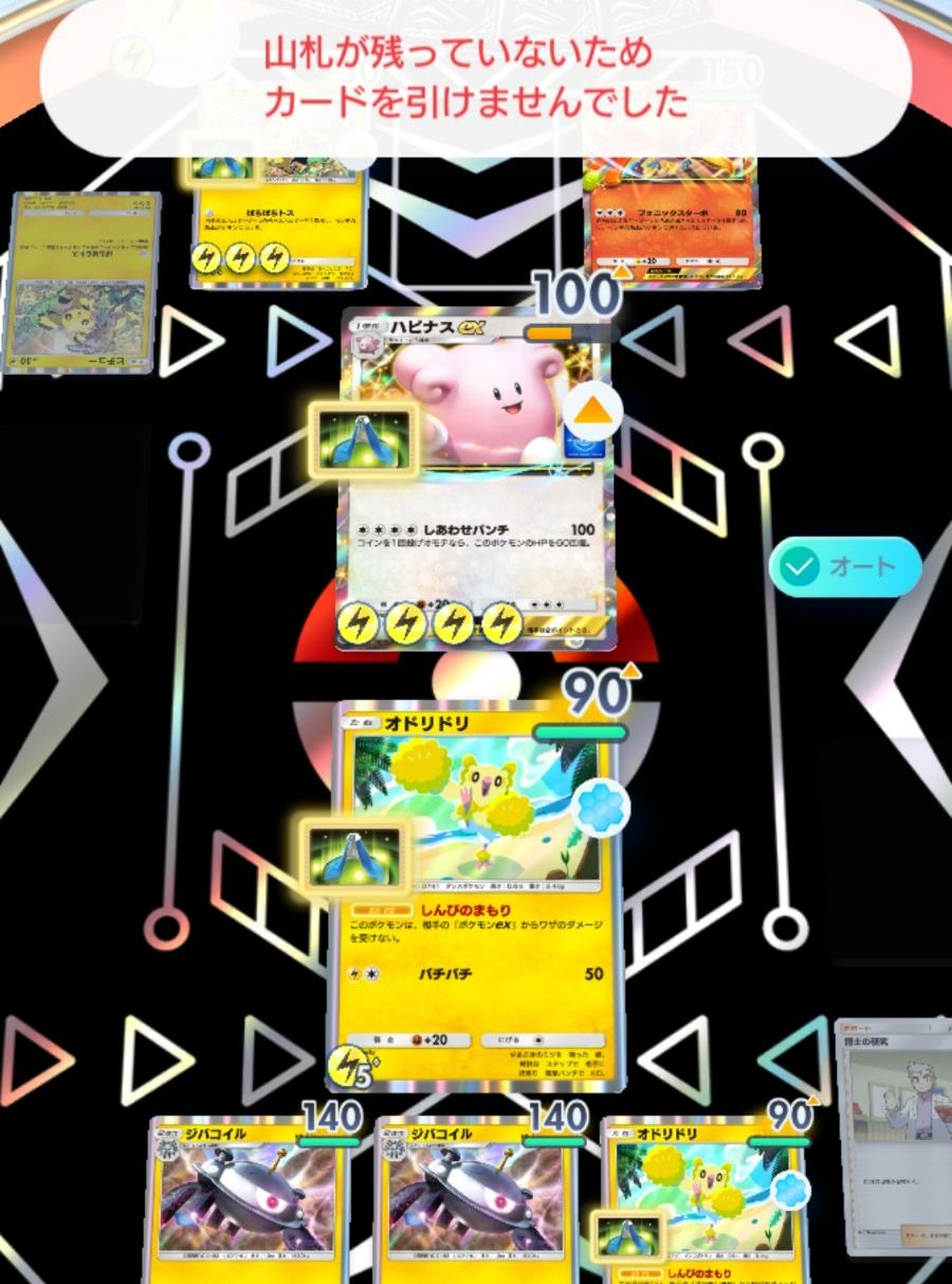 こちらのオドリドリは50ダメージを与えるが、相手のハピナスは50%の確率で60回復する。