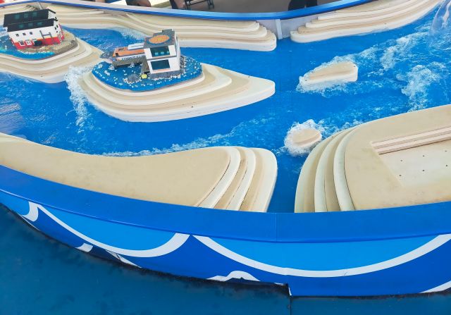 これはレゴで作ったボートを流す場所。
