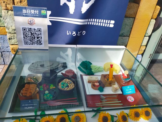 飯屋のサンプル品がレゴになっている。