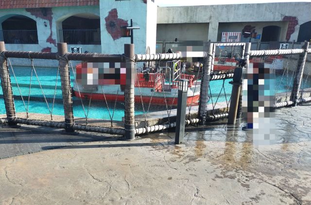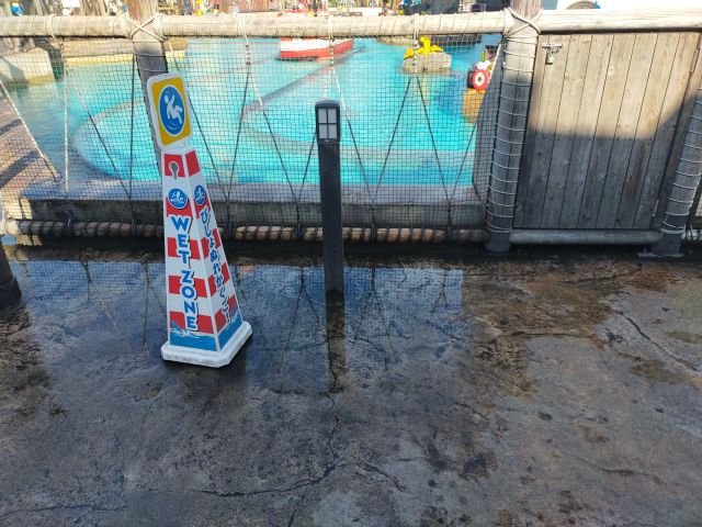 これは、びしょ濡れになるコースター系アトラクションの待機列。
