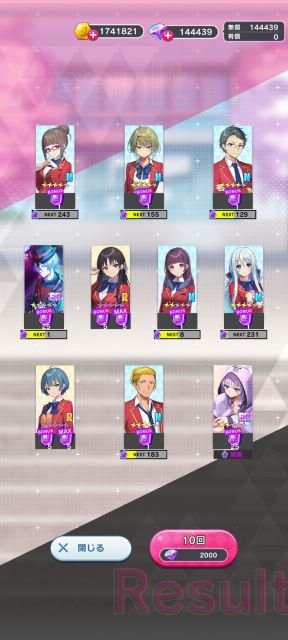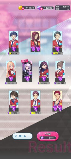 今回のガチャは20回(4,000ダイヤ消費)で済んだ。
