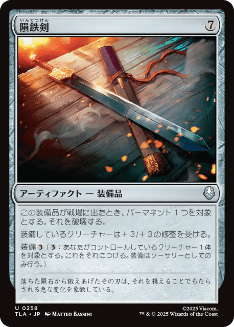 万能溶剤はデッキに入れていないが、万能パーマネント除去だけでなく装備品にもなるのならこれは必須。内定。