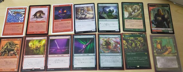 上がデッキから抜けたカード、下が新しく入ったカード。