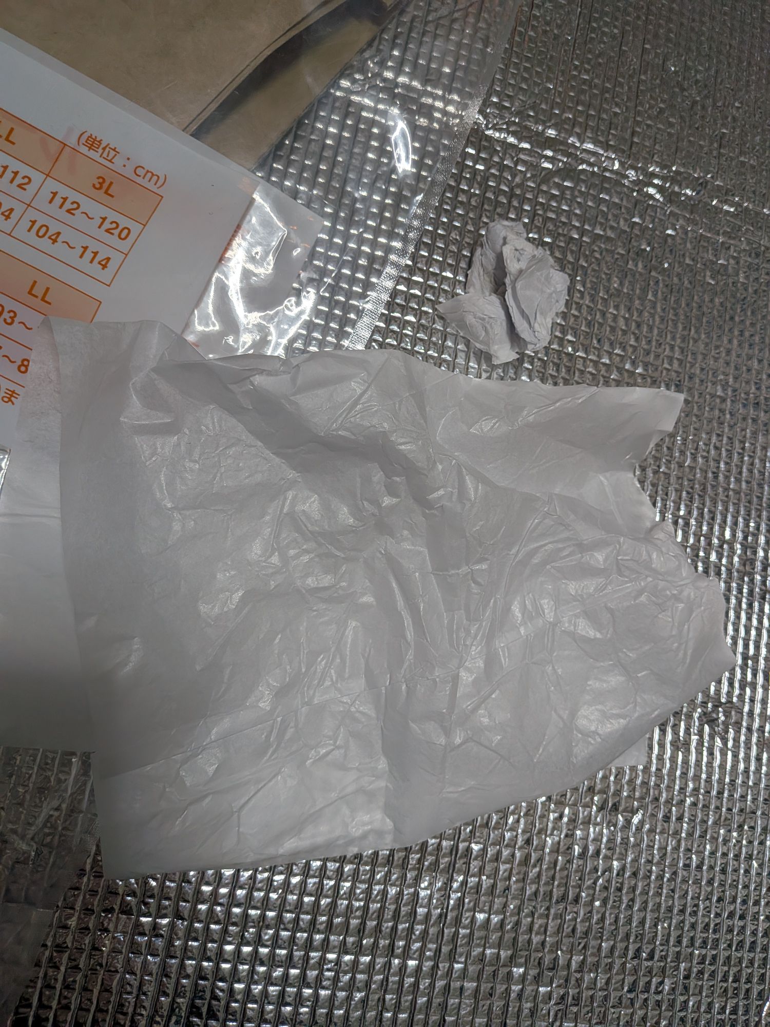 衣類を買った時に挟まっている、白い紙。グラシン紙?