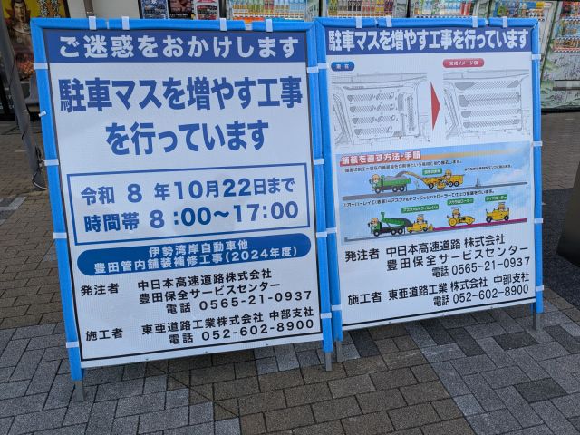 これは、サービスエリアで見かけた工事看板。