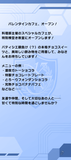 今回のイベントシナリオは「ようこそバレンタインカフェへ」。全10話。