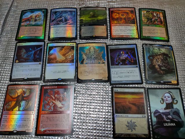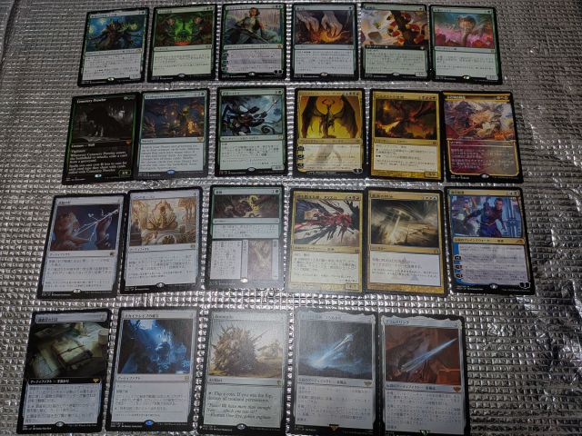 統率者デッキで使う予定のカードがほとんどだが、オジャネンやリリアナの表紙カード(?)は思わず買ってしまった。
