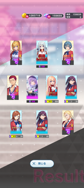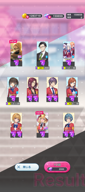 10回ガチャ(ダイヤ消費2,000)のみで新規SRが手に入ることは結構起こるが、持っていなかったSRまで手に入るとは思わなかった。よくばりセット。ありがとう。