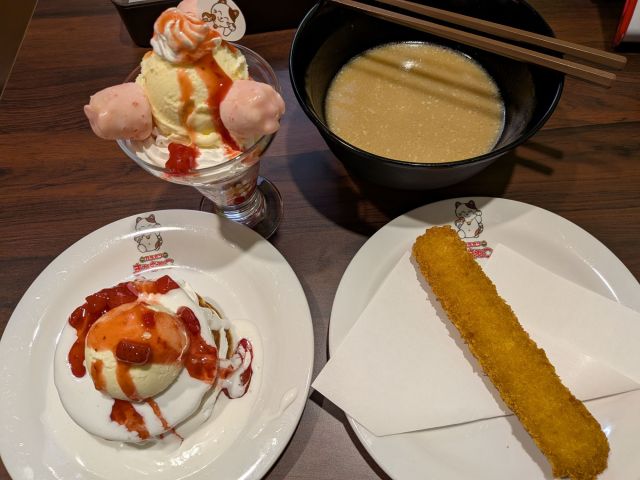 チョコソースはくどかったが、いちごソースはそうでもない。食べやすい。