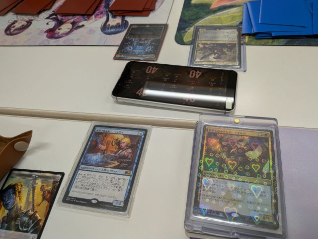 パック開封している人を見ていたり、トレードを見ていたり、統率者デッキを改良している人を手伝ったり。