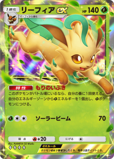 エネ加速としては「リーフィアex」に近い能力であり、自身がバトル場に居なくても使える一方、バトル場のポケモンにしか付けられない。