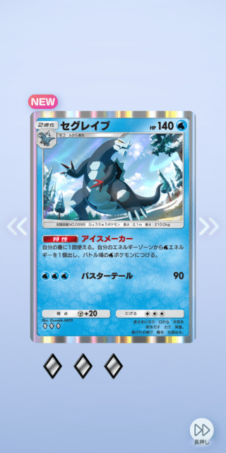 がんめんガードで耐えつつ、メガチルタリスexを倒してくれた子(◇3以下のみのバトルトライにて)。