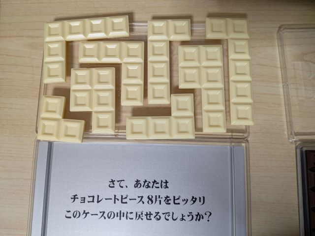 「明治ホワイトチョコレートパズル」(難易度スイートとろける甘さ。8片。正解は7,764通り)