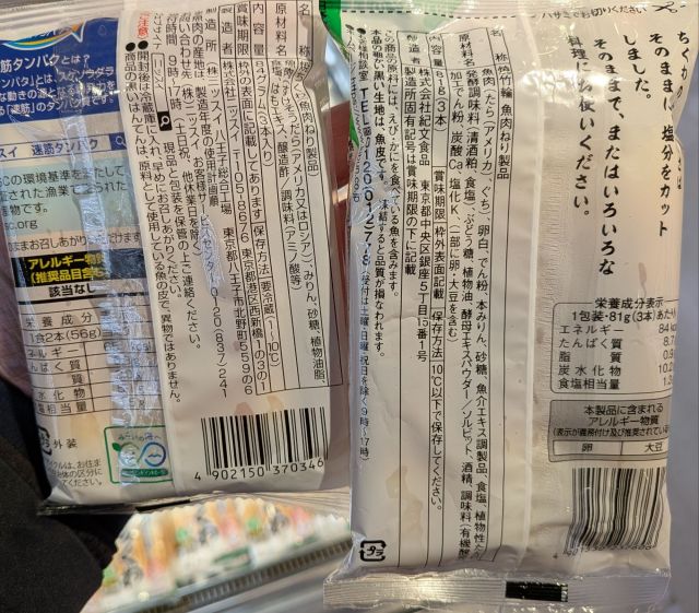先日、ちくわのタンパク質量が気になって裏面を見た。