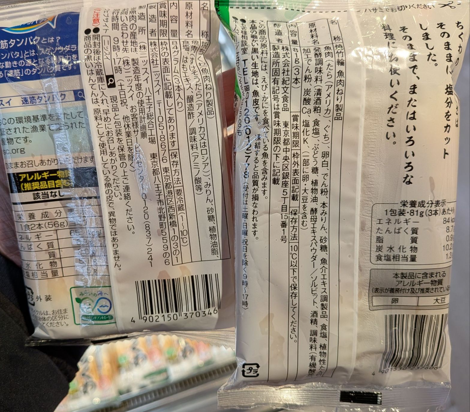 いずれも3本入りのちくわだが、栄養成分表示を見て驚いた。