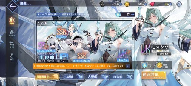 20回建造でお出迎え。50回建造までで更に2体入手。