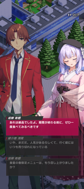 坂柳が絶品と評する「食堂の春限定メニュー」が気になる。