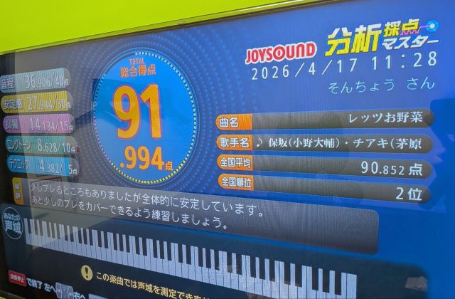 令和の今、「レッツお野菜」を歌うのが私以外にも居て嬉しい。そして2位は悔しい。