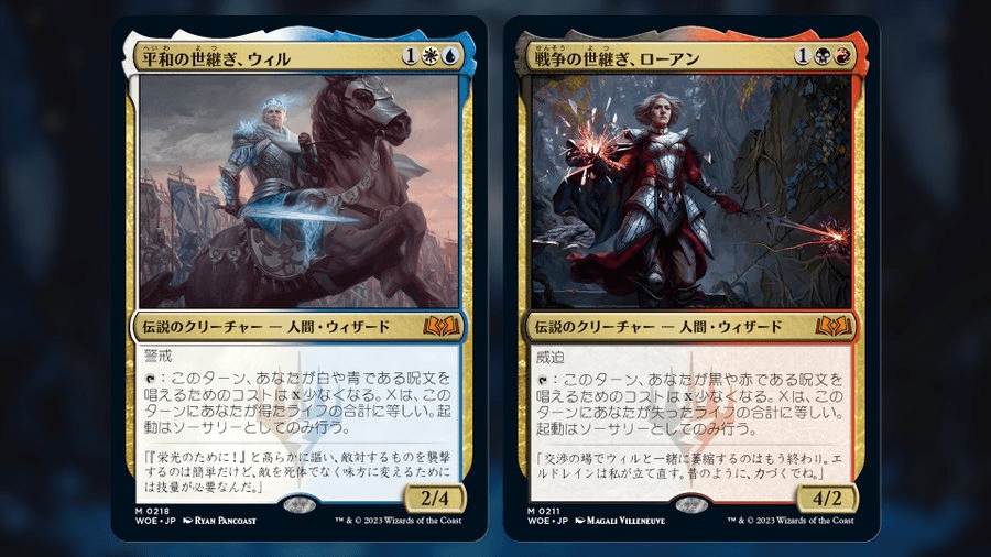 MTGの話。 前回の続き。 黒赤の「戦争の世継ぎ、ローアン」は楽しすぎるカードだったが、白青の「平和の世継ぎ、ウィル」も楽しそうなカードではある。 ●平和の世継ぎ、ウィル 繰り返しになるが、 弟のローアン続きを読む “【エルドレインの森】自分が回復した分、白と青のコストを軽減できる「平和の世継ぎ、ウィル」はX枚ドローやX体トークンや霊気貯蔵器で勝とう。【EDH目線】”