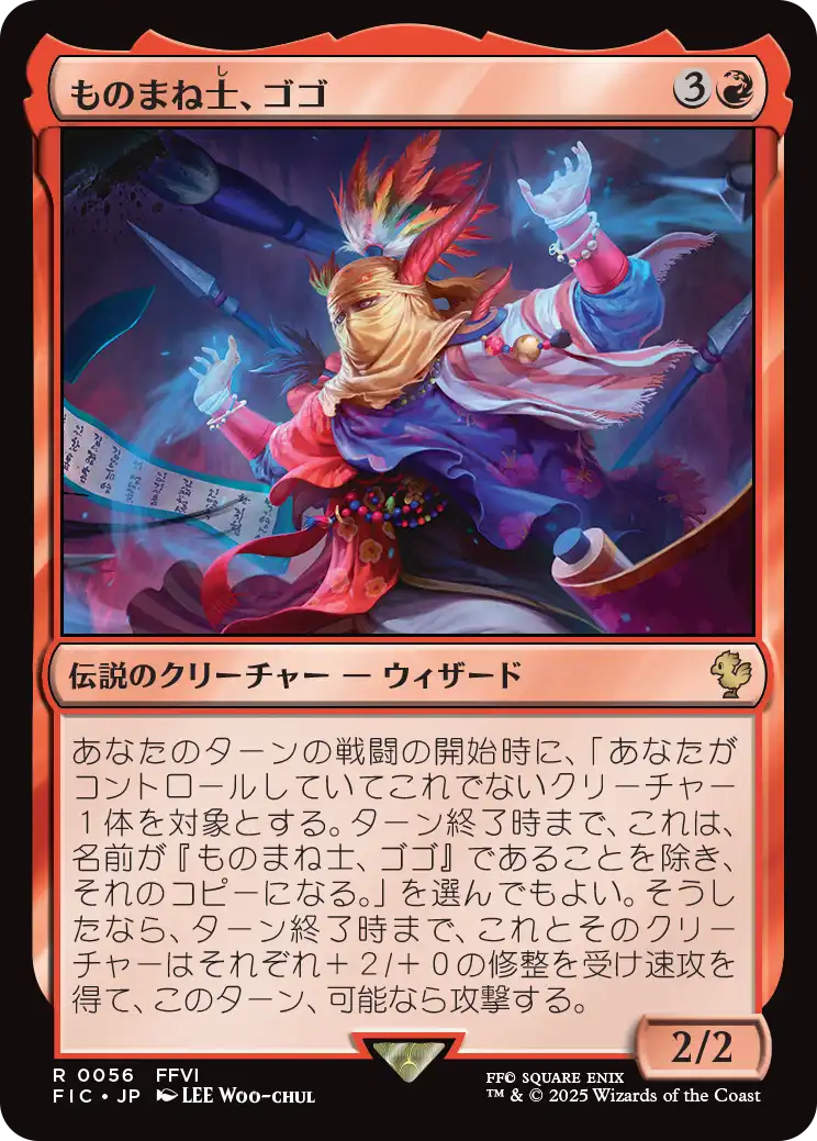【統率者】戦闘開始時にゴゴのままで自軍クリーチャーのコピーになれるEDH「ものまね士、ゴゴ」は伝説のクリーチャーのコピーになれるのが素敵(統率者にするより他のデッキに入れたい)。