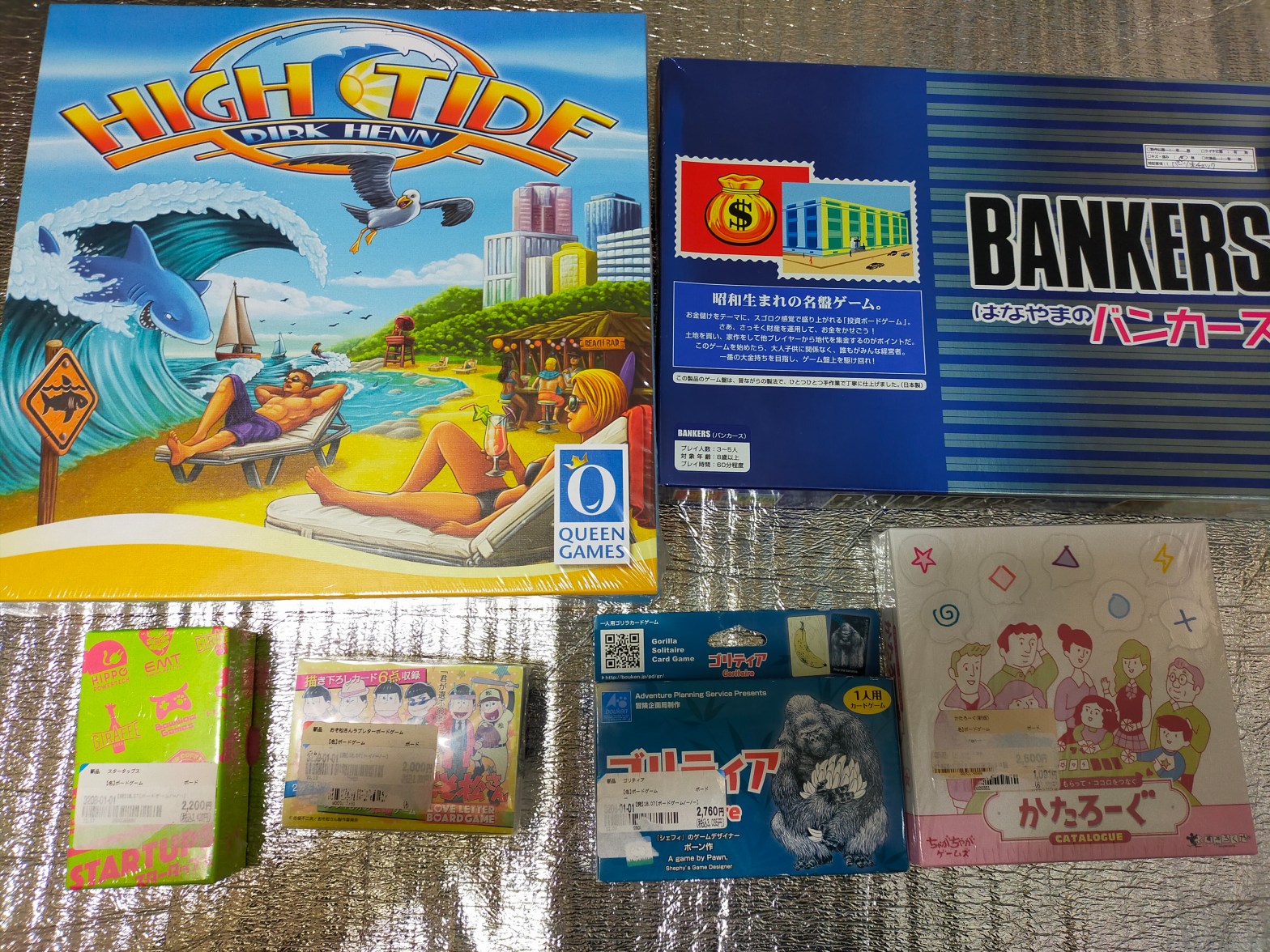 カードを売った反動で(?)ボードゲームを6点買うなど(ハイタイド、バンカース、スタータップス、おそ松さんラブレター、ゴリティア、かたろーぐ)