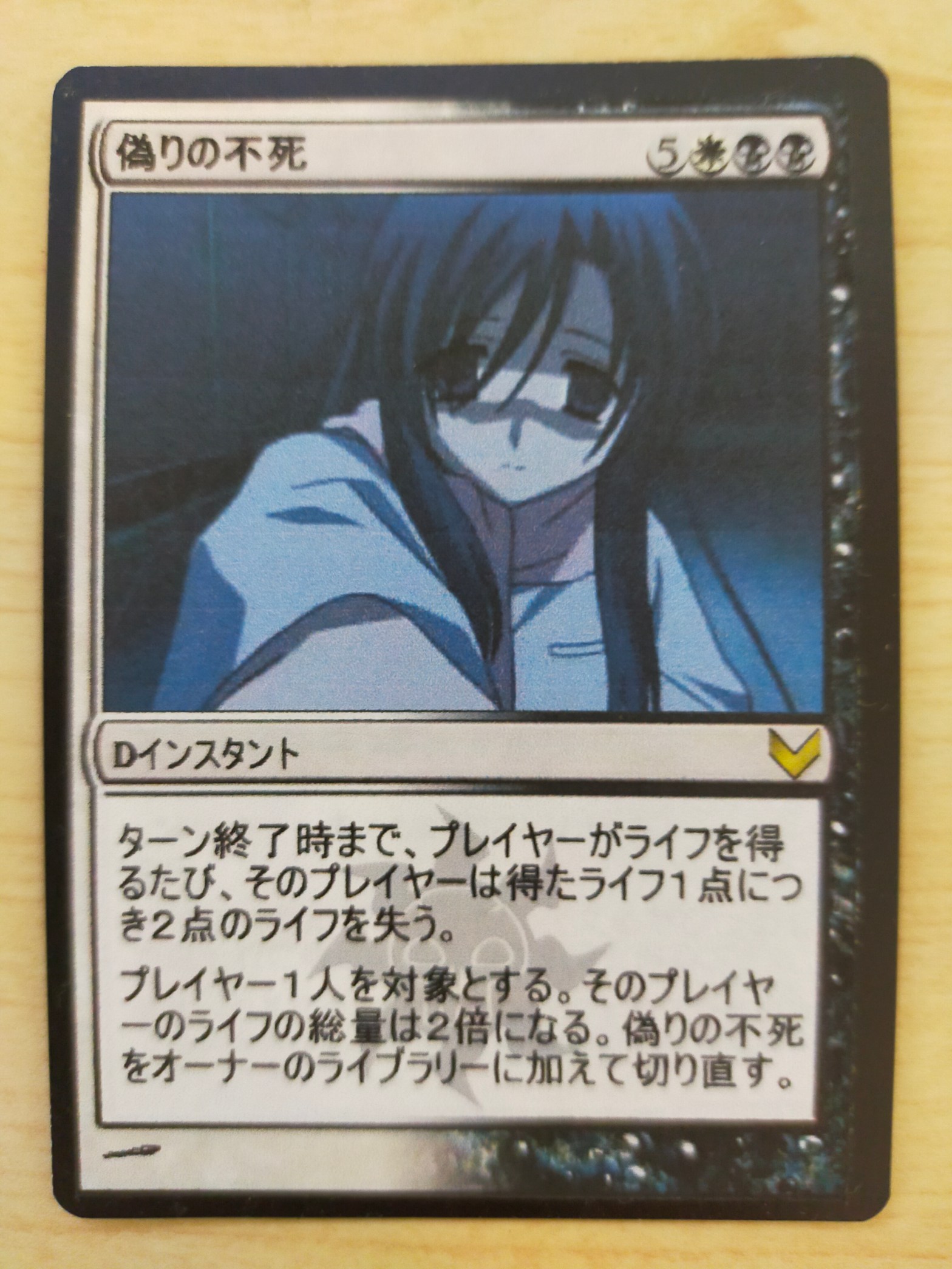 MTGの話。 前回の続き。 オリジナルカードを作るのにハマった時期が時期なだけに、好きなアニメが古い。 今回はナイスボートで有名なSchool Days。桂言葉(かつら ことのは)様が好きです。 カードの効果としては続きを読む “【MTG】昔作ったオリジナルカードが発掘された3(School Daysでは言葉様が好きです)”